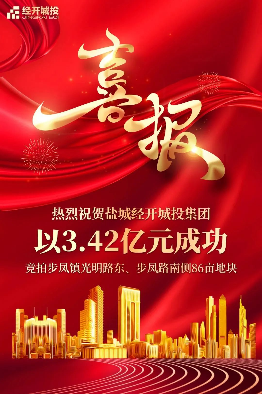 5月26日上午,鹽城經(jīng)開(kāi)城投集團(tuán)首次成功競(jìng)拍步鳳鎮(zhèn)光明路東、步鳳路南側(cè)20230302號(hào)地塊使用權(quán),成交總面積86畝,成交總價(jià)3.42億余元人民幣。該地塊周邊交通、教育、醫(yī)療、商業(yè)配套設(shè)施齊全,生活便利。