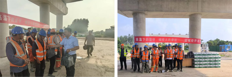 為給高溫下堅守崗位的一線工人送去清涼與慰問,確保他們在高溫環(huán)境下的身體健康和工作安全,同時表達對一線工人辛勤付出的感謝,7月11日,鹽城經(jīng)開城投集團副總經(jīng)理張志軍一行組成慰問組,先后前往鹽洛高速步鳳互通、步鳳小學擴建(一期)、鳳舞華庭等項目現(xiàn)場開展“夏季送清涼”活動。