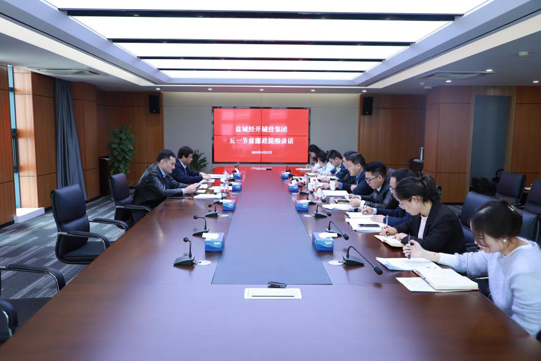 4月27日上午,鹽城經(jīng)開(kāi)城投集團(tuán)開(kāi)展2023年“五一”節(jié)前廉政提醒談話,集團(tuán)董事長(zhǎng)王建旭主持會(huì)議并講話。
