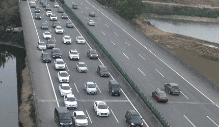 在超車道、主干道上開“龜速車”會(huì)影響其他車輛的通行,易引發(fā)多車連環(huán)追尾事故。